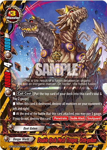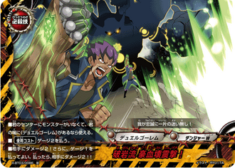- When you are being attacked, choose one of the attacking cards, and you may put this card from the field into your drop zone. If you do, put the top card of both players' deck into the drop zone, and destroy the chosen card.