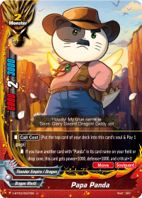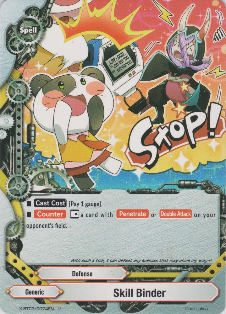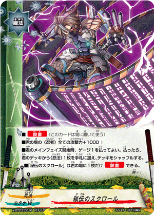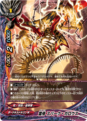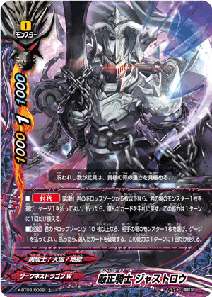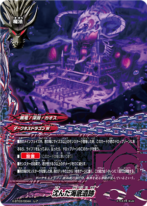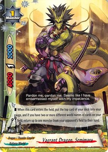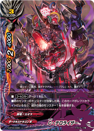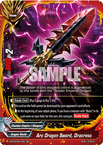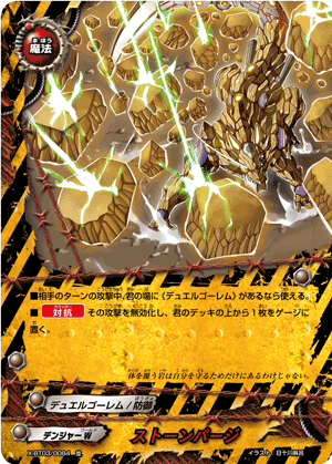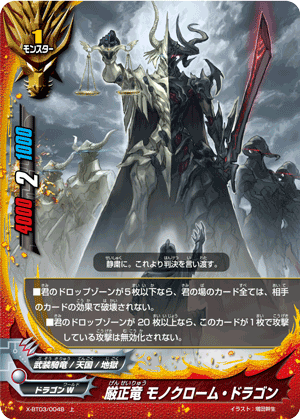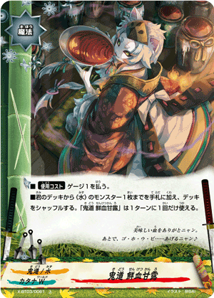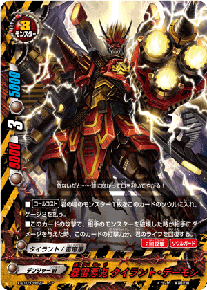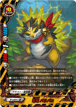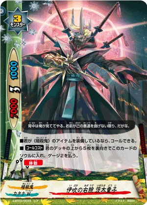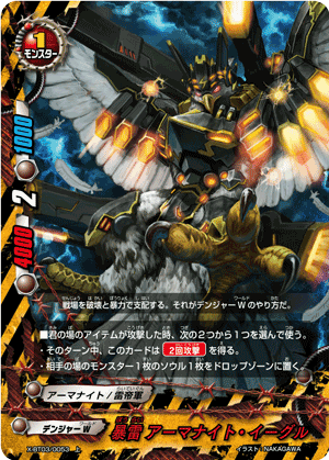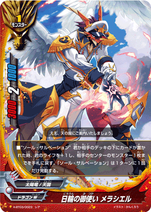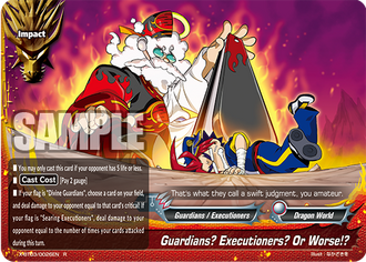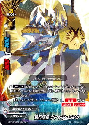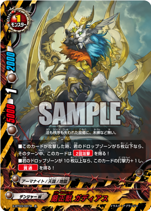 - When a card other than this card on your field attacks, put the top card of your deck into your gauge, and if you have two or less cards in your drop zone, for this turn, this card gets critical+1