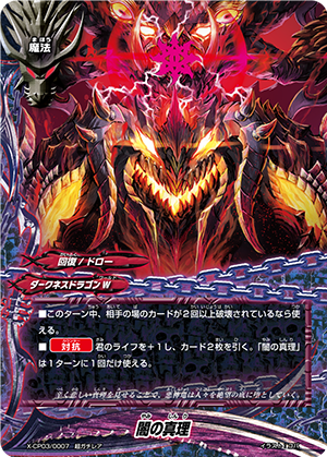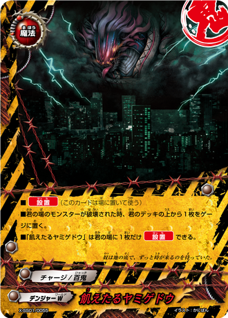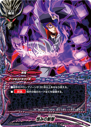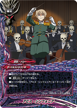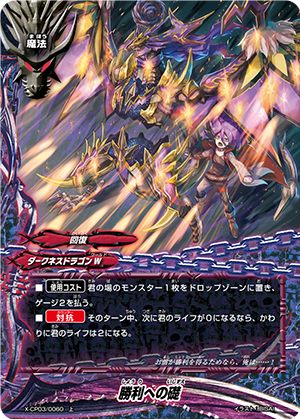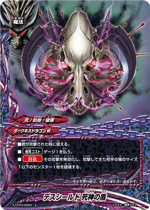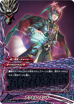 - At the beginning of your attack phase, put a card from your opponent's gauge into his or her drop zone, and then, if you have 4 life or less, deal 2 damage to your opponent.