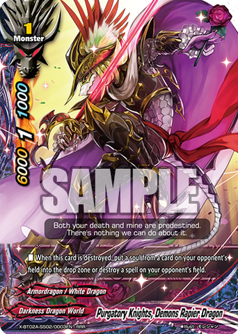 - When a monster with "Purgatory Knights" in its card name on your field is destroyed, put the top card of your deck into the drop zone, and you gain 1 life.