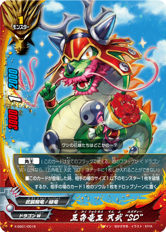 - At the end of your opponent's turn, there is a 《Black Dragon》 [Set] on your field, destroy all monsters on your opponent's field, and you gain life equal to the number of cards destroyed!