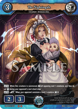 [AUTO] When this creature is destroyed, you may discards two cards from your hand. If you do, summon this creature, and if it is your opponent's turn, [Rest] this creature.