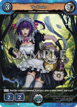 [AUTO] [DICE Yellow 3-6] When this creature is summoned, draw cards until there are four cards in your hand.