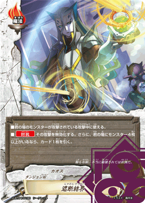 - When this card attacks, if you have three or more different world names of cards in your drop zone, destroy a card on your opponent's field.