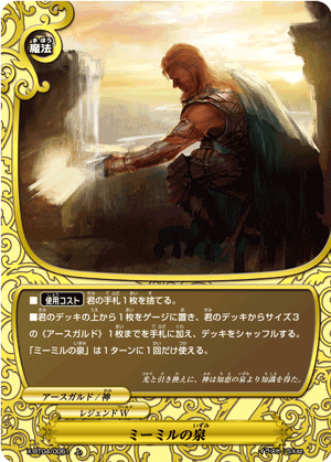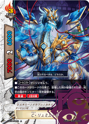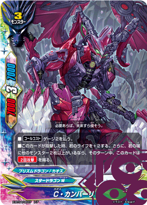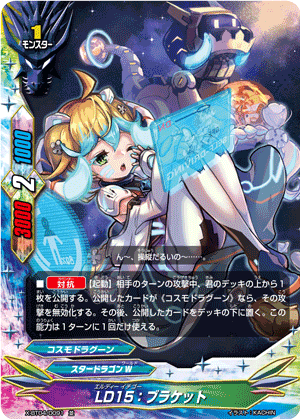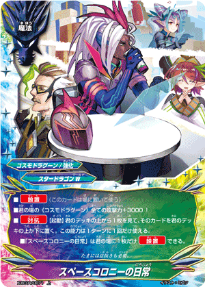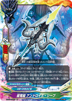 - [Activate] Choose a 《Cosmo Dragoon》 from your drop zone, and you may pay 1 gauge. If you do, reveal the top card of your deck. If the card revealed is a 《Cosmo Dragoon》, put the chosen card to your hand. Then, put the card revealed on the bottom of your deck. You may only use this ability once per turn.