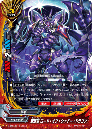 - [Call Cost] [Put a "Shadow Dragon" from your field into this card's soul & Put nine "Shadow Dragon" from your drop zone into this card's soul & Pay 3 gauge]