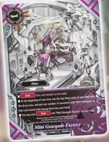 - [Activate] Choose a card with [Set] on your opponent's field, you may pay 1 gauge, and put this card on your field into the drop zone. If you do, destroy the chosen card.