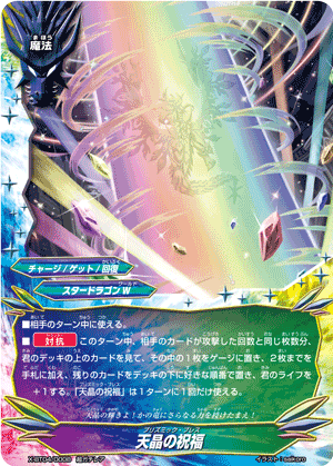 - [Counter] Look at the number of cards from the top of your deck equal to the number of times your opponent's cards have attacked during this turn, put a card from among them into your gauge, put up to two cards into your hand, and put the rest on the bottom of your deck in any order, and you gain 1 life. You may only cast "Prismic Preci" once per turn.