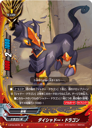 - For each card with "Shadow Dragon" in its card name in this card's soul, all 《Shadow Dragon》 on your field get power+3000!