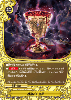 - [Counter] Nullify the attack. Then, if you have an item equipped, put up to one《Hero》other than "Bloody Holy Grail" from your drop zone into your hand.