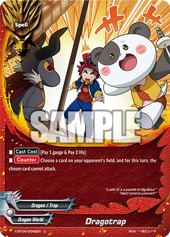 - [Counter] [Activate] During an attack on your opponent's turn, reveal the top card of your deck. If the card revealed is a 《Cosmo Dragoon》, nullify the attack. Then, put the card revealed on the bottom of the deck. You may only use this ability once per turn.