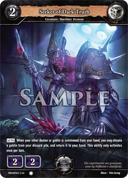 [AUTO] When your other demon or goblin is summoned from your hand, you may choose a goblin in your discard pile, and return it to your hand. This ability only activates once per turn.