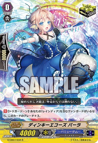 Continuous [R]: If you do not have a grade 3 or greater vanguard with 「Duo」 in its card name, this unit gets [Power] -5000.