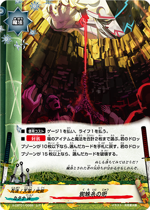 - [Counter] Nullify the attack. Then, if you have a 《Plague》 spell in the soul of an item on your field, choose a card on your opponent's field, and for this turn, that card gets critical-1.
