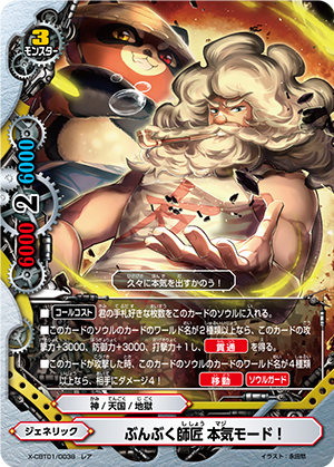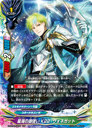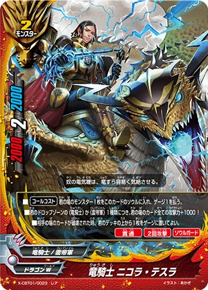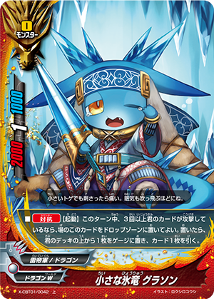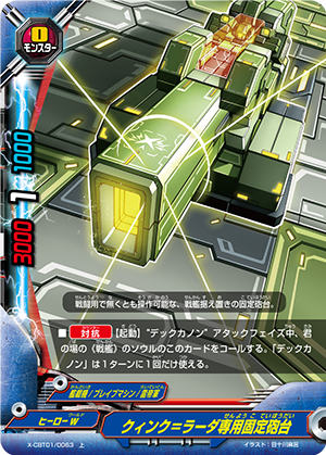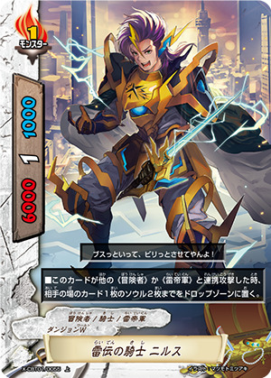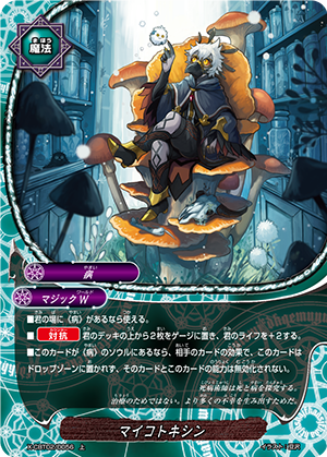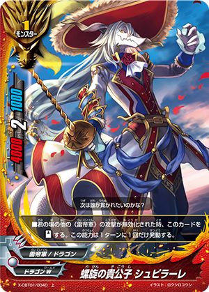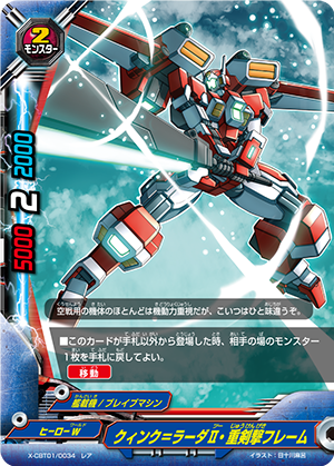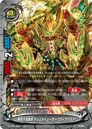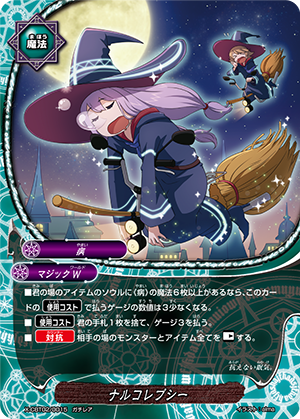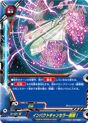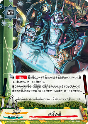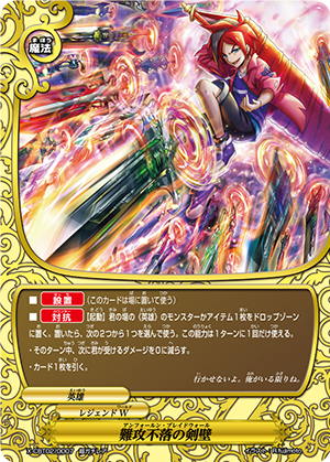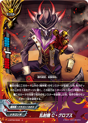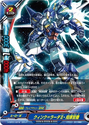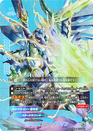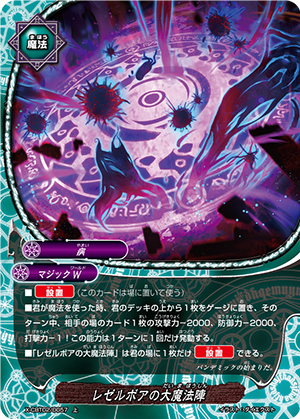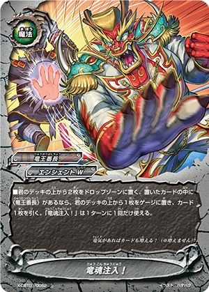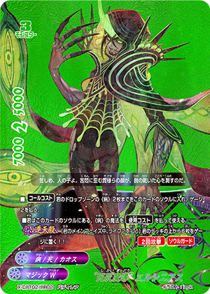 - When you cast a spell, put the top card of your deck into your gauge, and for this turn, a card on your opponent's field gets power-2000, defense-2000 and critical-1! This ability only activates once per turn.