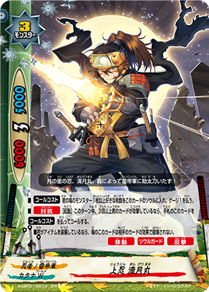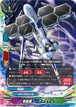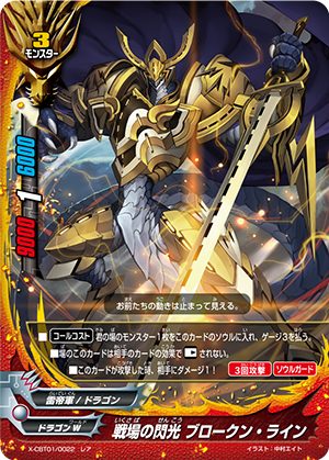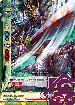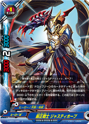 - [Counter] [Activate] If your cards have attacked three times or more during this turn, destroy a card on your opponent's field, and then, if you have 4 life or less, [Stand] this card. You may only use this ability once per turn.