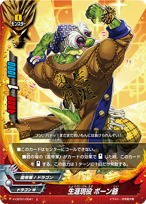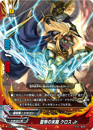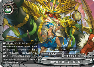 - [Counter] [Activate] Choose a size 3《Dragon Chief Emperor》 other than "Seeker of the Strength, Duel Jaeger" from your drop zone, and you may discard a card from your hand. If you do, call the chosen card on the top of this card without paying its [Call Cost].