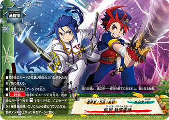 - [Counter] [Activate] Choose a card on your field and you may pay 1 gauge. If you do, [Stand] that card, and then, if you have 4 life or less, [Stand] this card. This ability can only be activated once per turn.