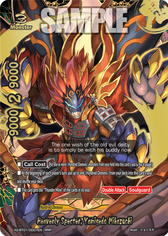 - At the beginning of each player's turn, put up to one 《Hundred Demons》 from your deck into this card's soul, and shuffle your deck.