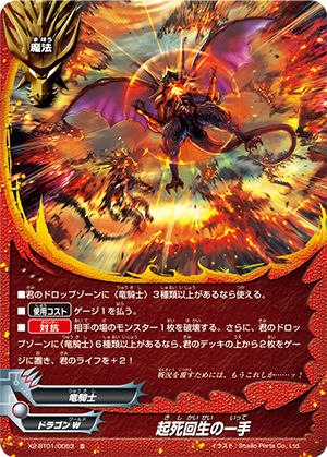 - When this card is destroyed, draw a card. Then, if your flag is "Dragon Zwei", put up to one "Dragon Drei" from your hand or your deck on top of your flag, and shuffle your deck. If you do, you gain 5 life!