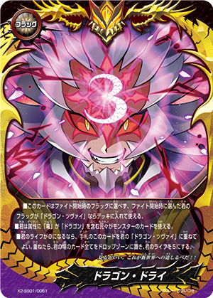 - You cannot choose this card as your flag during the start of the fight. You may put this card into your deck and use it if your initial flag is "Dragon Zwei".