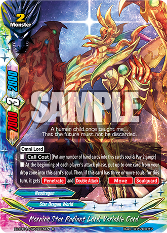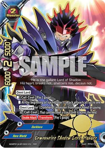- At the beginning of each player's attack phase, call up to one [Omni Lord] or 《Darkhero》 from hand by paying it's [Call Cost]. That card becomes a size 0 until it leaves the field.