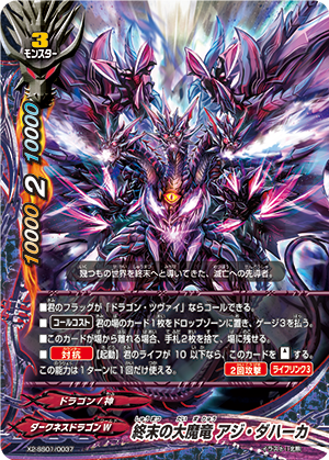 - When this card attacks, if your have 7 or more different 《Disaster》 in your drop zone, deal 7 damage to your opponent!