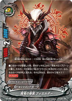 - When this card enters the field, choose up to one size 3 or greater monster with "Dragon" in its attribute from your drop zone, and you may destroy another monster on your field. If you do, put the chosen card to your hand, put the top card from your deck into your gauge, and you gain 1 life.