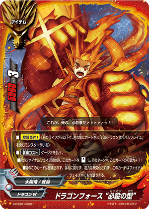 - At the end of the battle that a 《Sun Dragon》 with this card in its soul attacked, put the top card from your deck into your gauge, and you gain 1 life. This ability only activates once per turn.
