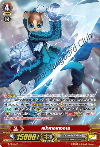 Auto [R] [Generation Break (1)] {Active if you have one or more face up G units in total on your [V] or G zone): When this unit boosts a vanguard, you may pay the cost. If you do, choose one of your units, and that unit gets [Power] +4000 until end of turn.January 2018 Shop Tournaments