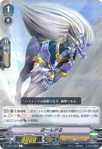 Normal/1/Boost/7000/10000/1AUTO [V/R]: When your other rear-guard is placed, this unit gets [Power] +3000 until end of turn.