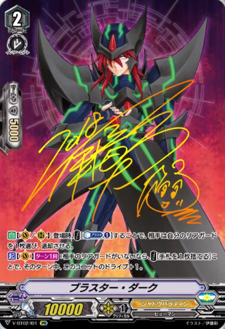 ACT [V] [1/Turn]: If your opponent has no rear-guards and 4 or less cards in his or her damage zone, COST[S-Blast (1) - Grade 3], and deal one damage to your opponent's vanguard.