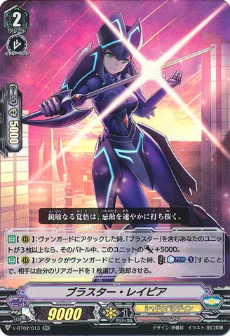 AUTO [V/R]: When placed, [S-Charge (1)]. If your soul has ten or more cards, COST[C-Blast (1)], choose one of your opponent's rear-guards, and retire it.