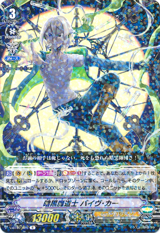 AUTO [V]: At the end of the battle that it attacked, if you have thirteen cards or more in your soul, COST[C-Blast (1) & choose a card from your hand and three of your rear-guards, and put them into your soul], choose a card from your soul, ride it as [Stand], and it gets [Critical] +1 until end of turn.