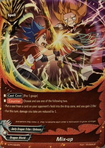- [Counter]【Act】Choose a monster on your opponent's center, and you may pay 1 gauge. If you do, drop a soul from the chosen card, and put that card into the drop zone!