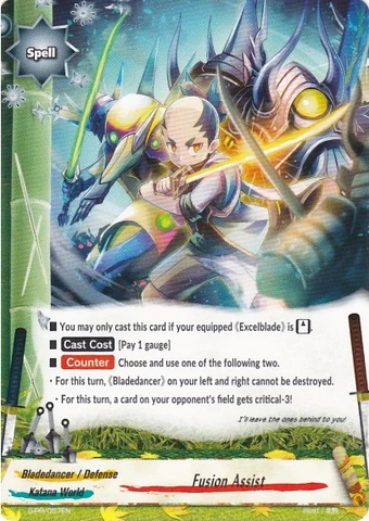 - When a card is put into your opponent's gauge, if your opponent has three or more gauge, drop cards from your opponent's gauge until your opponent has 2 gauge.