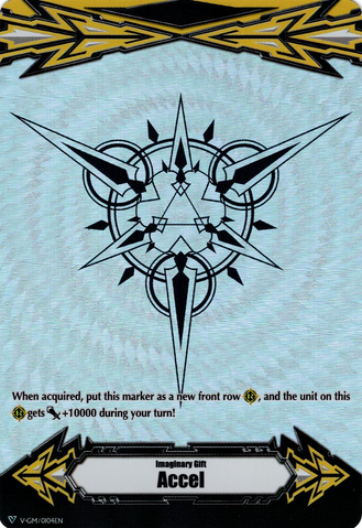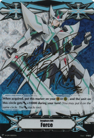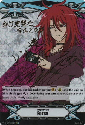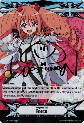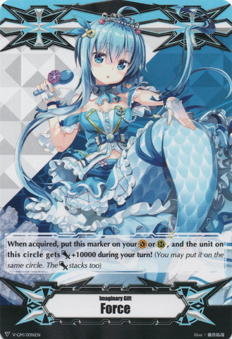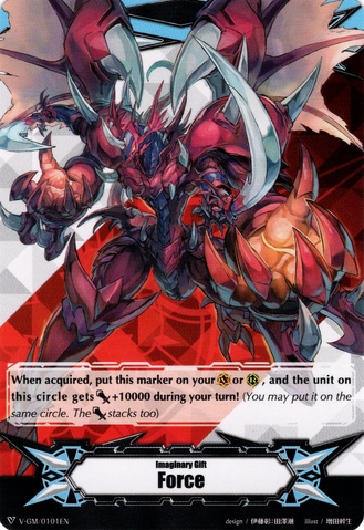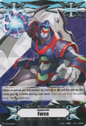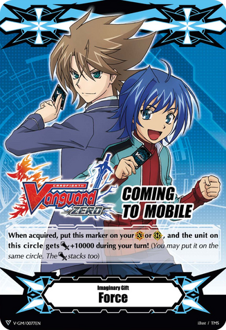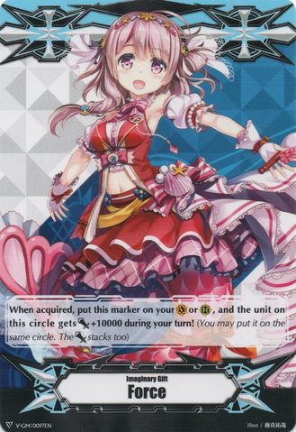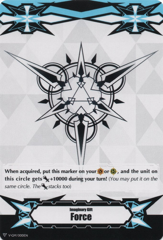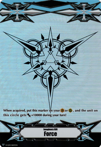 When acquired, put this marker on your [V] or [R], and the unit on this circle gets [Power] +10000 during your turn! (You may put in on the same circle. The [Power] stacks too)