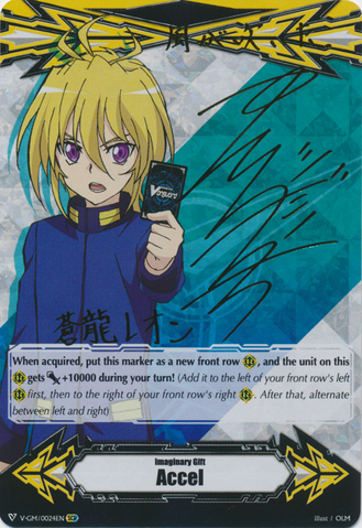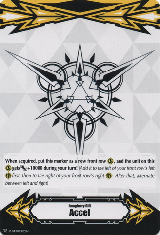 When acquired, put this marker as a new front row [R], and the unit on this [R] gets [Power] +10000 during your turn! (Add it to the left of your front row’s left [R] first, then to the right of your front row’s right [R]. After that, alternate between left and right)
