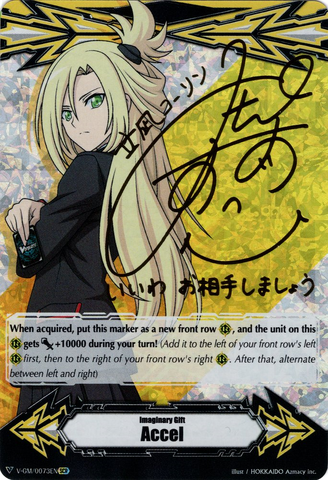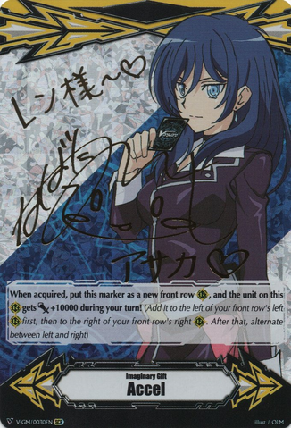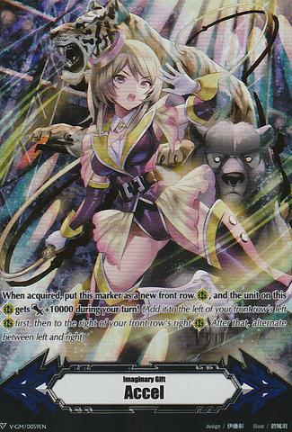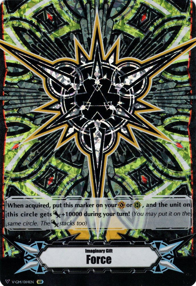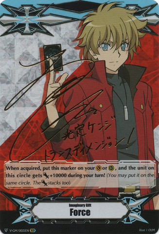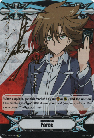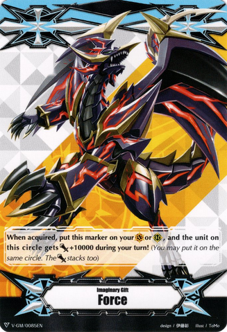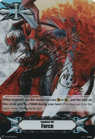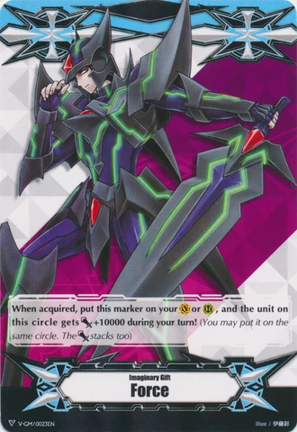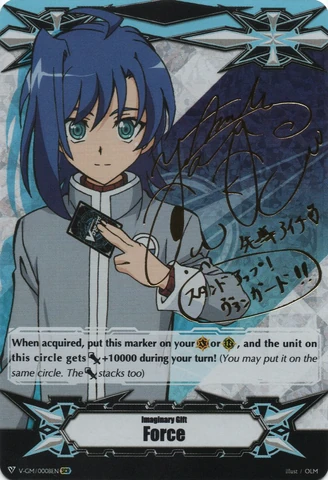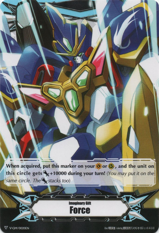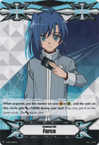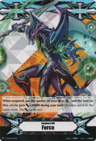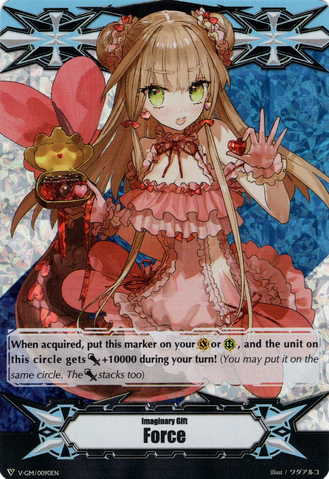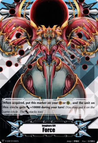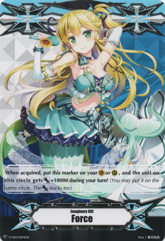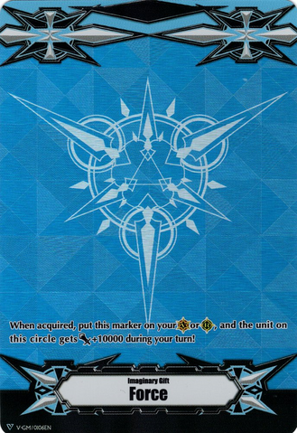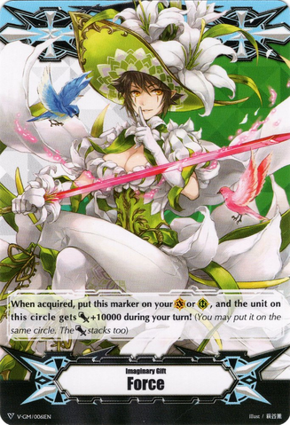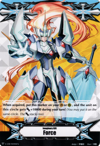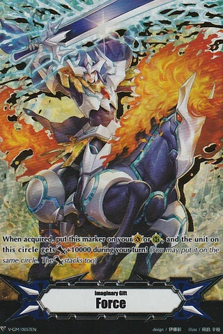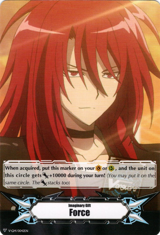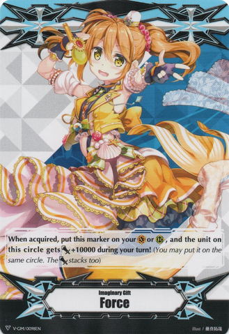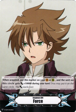 When acquired, put this marker on your [V] or [R], and the unit on this circle gets [Power] +10000 during your turn! (You may put in on the same circle. The [Power] stacks too)