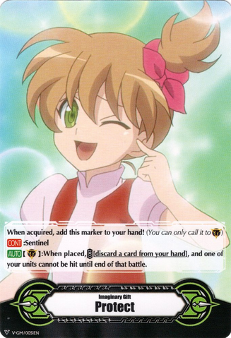 AUTO [G]: When placed, COST[discard a card from your hand], and one of your units cannot be hit until end of that battle.