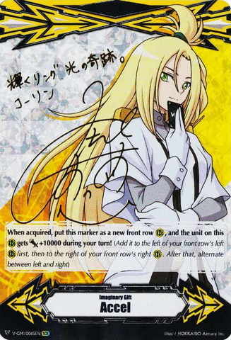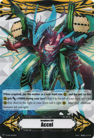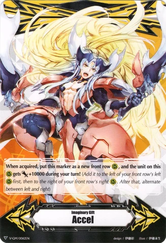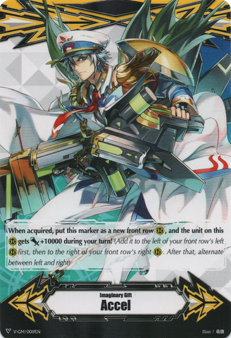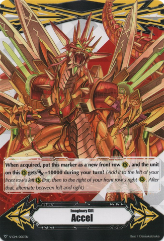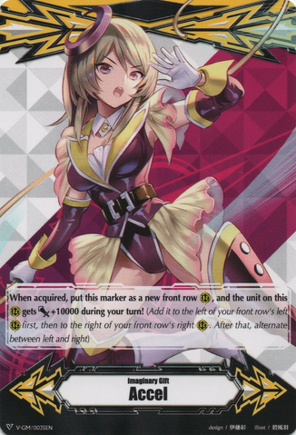When acquired, put this marker as a new front row [R], and the unit on this [R] gets [Power] +10000 during your turn! (Add it to the left of your front row’s left [R] first, then to the right of your front row’s right [R]. After that, alternate between left and right)