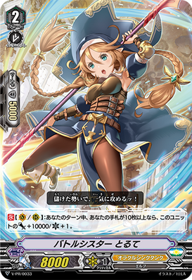 CONT [V/R]: During your turn, if you have ten or more cards in your hand, this unit gets [Power] +10000 / [Critical] +1.