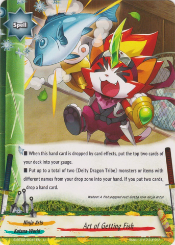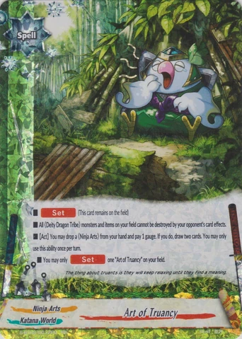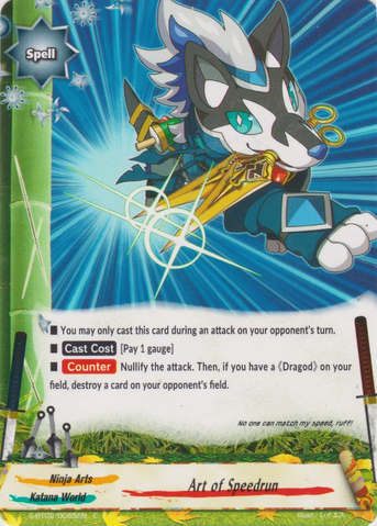 - [Counter] Choose a 《Dragod》 monster on your field, and [Stand] all monsters on your field with the same power as the chosen card. You may only cast "Deity Dragon Ninja Arts, Cy-clones Sword Dance" once per turn.