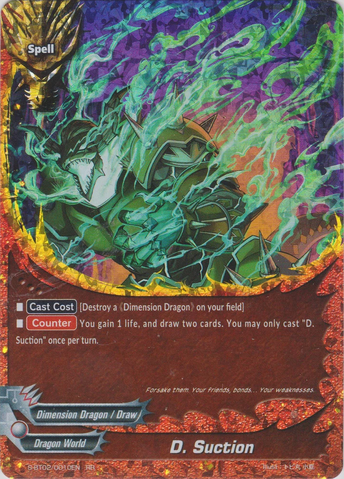 - [Counter] You gain 1 life, and draw two cards. You may only cast "D. Suction" once per turn.
