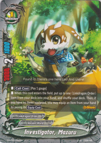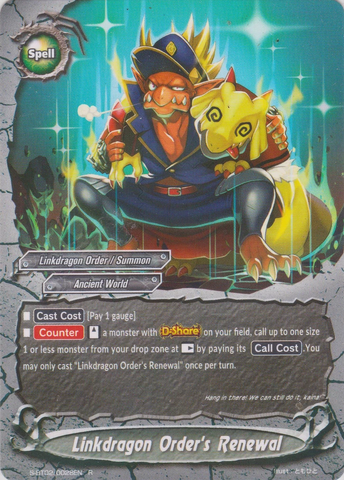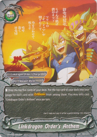 (D) When this card enters the field, you may drop the top card of your deck. If that card is a 《Linkdragon Order》, you gain 1 life!
