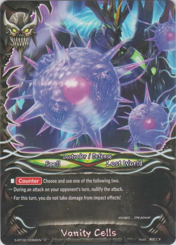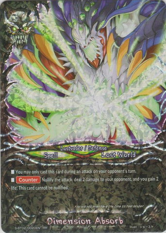 - [Counter] Put the top two cards of your deck into your gauge, and you gain 2 life. Then, the next damage dealt to you this turn is reduced to 0.