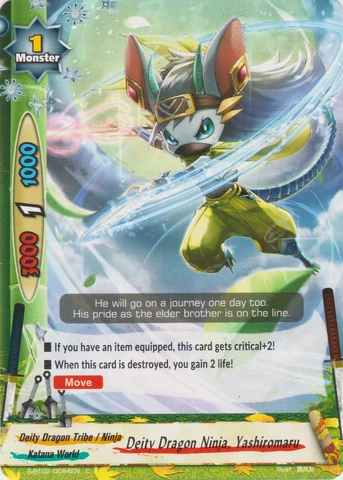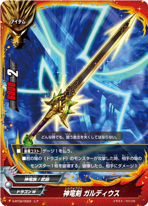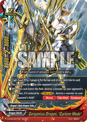 - When this card enters the field, if you have another 《Deity Dragon Tribe》 on your field, you may drop a hand card. If you do put the top card of your deck into your gauge, you gain 1 life, and draw a card.