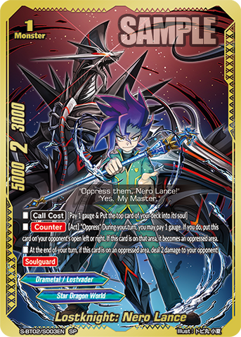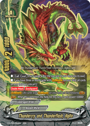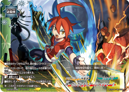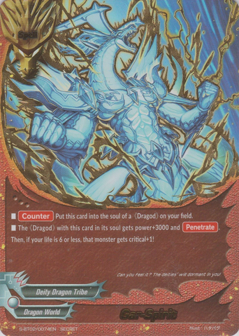 - If this card is in the soul of a《Dragod》, it gets power+3000 and [Penetrate]. Then, if you have 6 or less life, it gets critical+1.