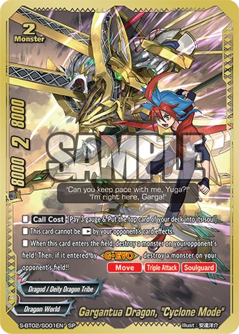- <G•EVO> When this card enters the field during the attack phase, call up to one 《Dragod》 monster from your hand without paying its [Call Cost]. That card becomes a size 0 until it leaves the field.