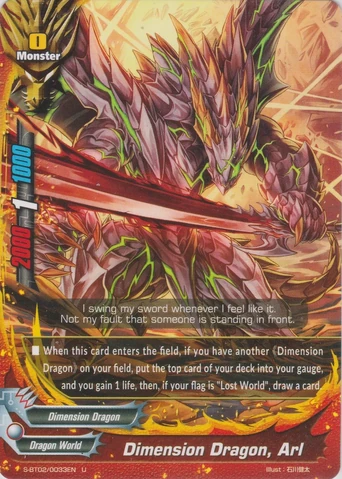 - When this card is put from the field into your drop zone, you may discard a 《Dimension Dragon》 from your hand. If you do, look at four cards from the top of your deck, put two from among them into your hand, and put the rest into your gauge.